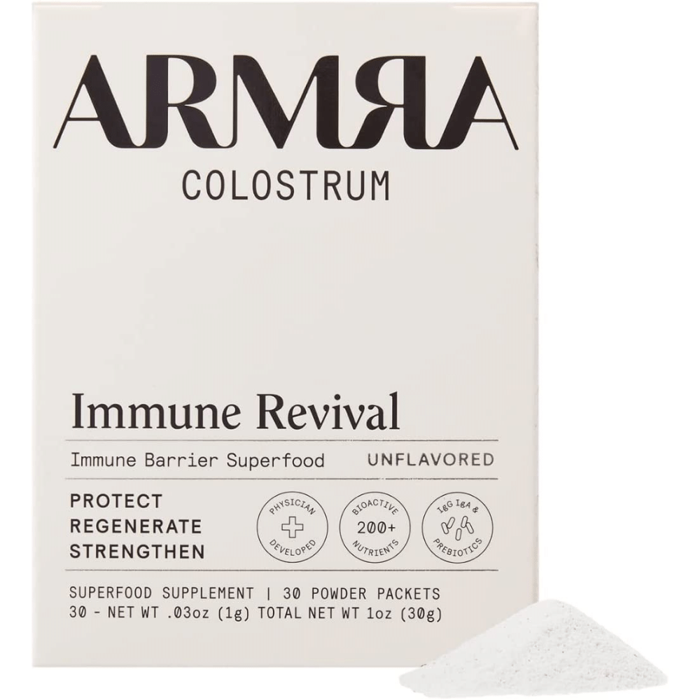 But here's the best part - ARMRA Colostrum-Immune Revival is pure colostrum, straight from grass-fed cows on family-owned farms in the USA. No additives or fillers here! They care about their calves, so they always come first. And don't worry, there are never any antibiotics or added hormones in our product. It's physician-formulated for your peace of mind.