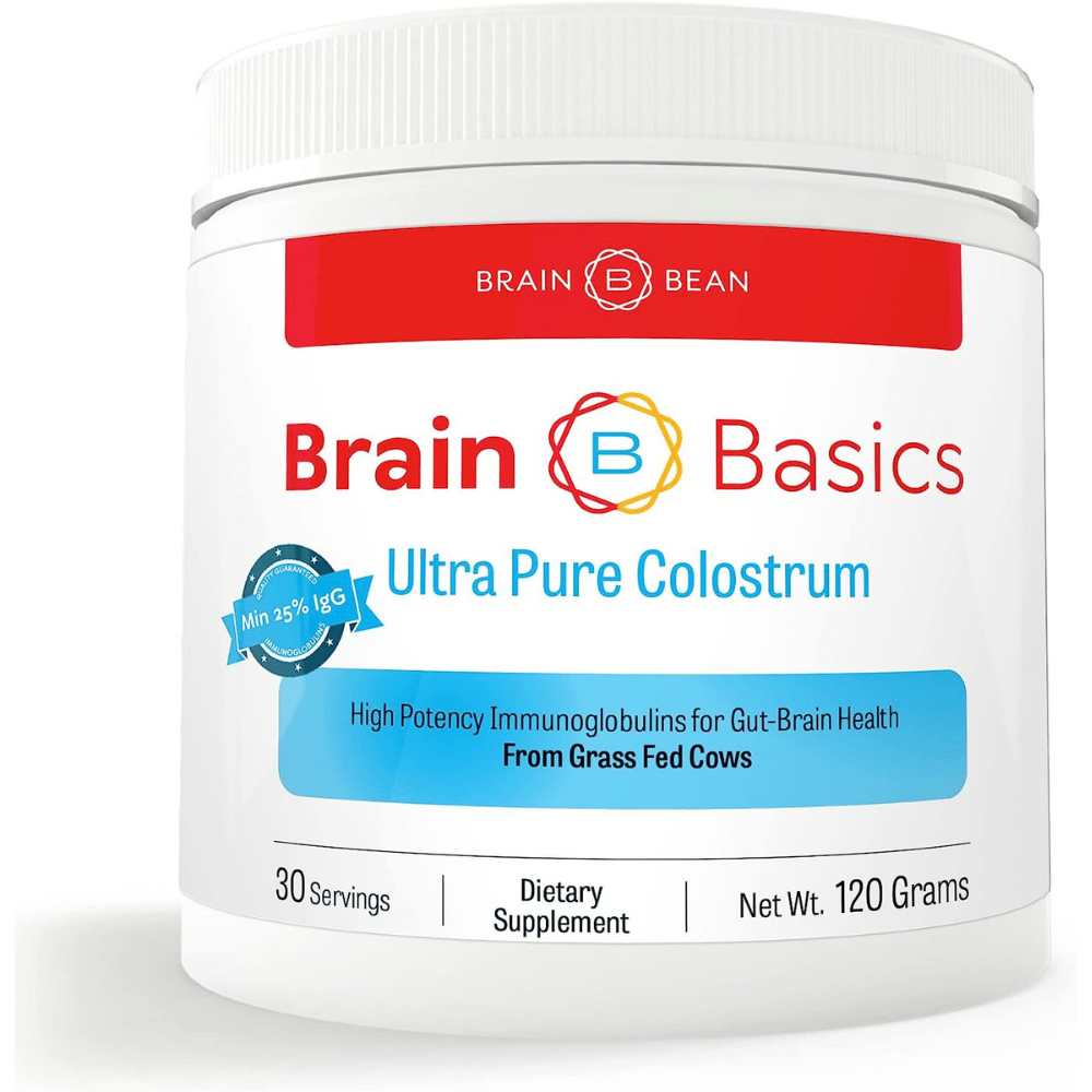 Brain Basics Ultra-Pure Colostrum is a nutrient-rich supplement and is processed using low-heat methods to ensure the preservation of vital bioactive compounds. This Colostrum has a minimum 25% immunoglobulins, aiding in the enhancement of the body's immune system.